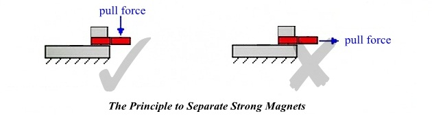 2。将磁铁平行分开,所需力较小。